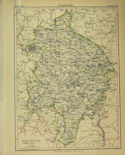 1888 Carte Warwick Angleterre Grande-Bretagne Britannica Neuvième Great Deals, Shop Online, Read