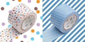 #Les ' Masking-Tapes ' sont de petits rouleaux adhésifs qui ont une infinité de vocations : faire du scrapbooking, donner une touche originale à vos livres et manuels, réaliser de jolis emballages cadeaux, décorer une multitude de choses, sceller des enveloppes, communiquer de manière originale ... Ce pack comprend 2 masking tapes de 2 couleurs/motifs différents et surtout, des rouleaux 'extra-larges'. Couleur : pois multicolores et rayures bleues et blanches Matériau : washi (papier japonais) Dimensions : 2 x 10 mètres de ruban de 30 mm de largeur