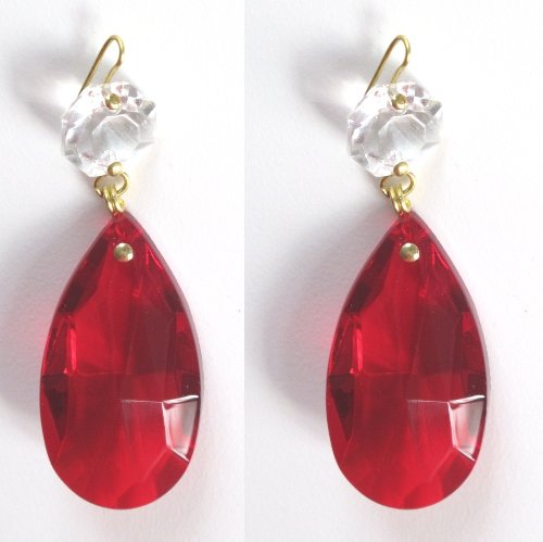 2 pampilles 38mm en cristal taillé couleur rouge-rubis + octogon clair - pour lustres où décoration, specifications, descriptions, pricing updates and more desirable for this product!
