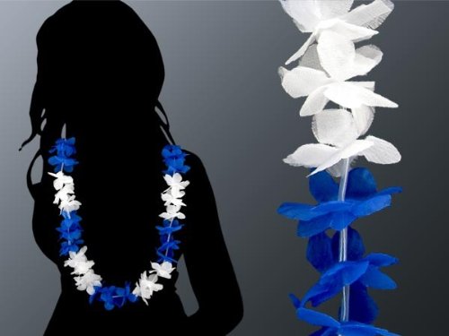 Lot de 24 collier Hawaïen BLEU BLANC "HK-21" textile hawaien Hawaï hawaii Hula fleur pétale ambiance tropique déguisement couronne fête beach party été plage printemps accessoire fête mariage anniversaire festival évenement Great Deals, Shop Online, Read