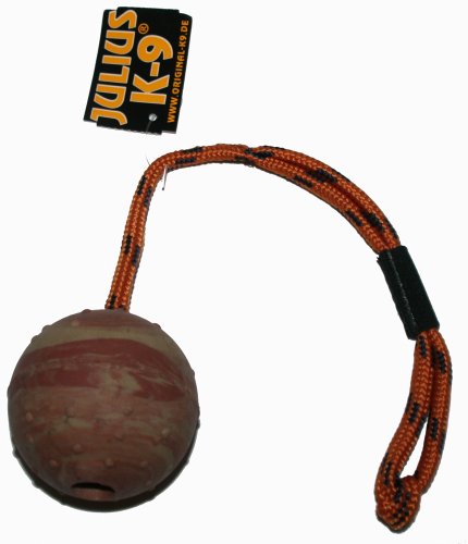242BLC-60 Balle à picots Julius K®9 avec corde passe-main / Balle à lancer - pour travail de motivation / jeu - 60 mm Ø