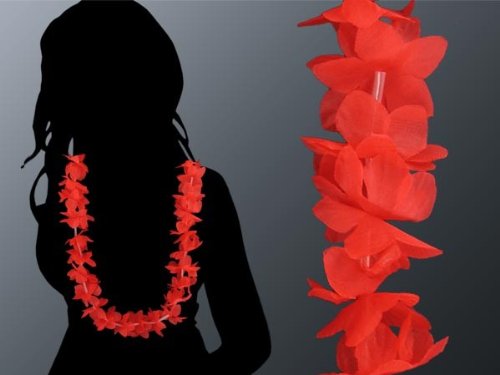 Lot de 24 collier Hawaïen ROUGE "HK-17" textile hawaien Hawaï hawaii Hula fleur pétale ambiance tropique déguisement fête beach party été plage printemps accessoire fête mariage anniversaire festival couronne évenement