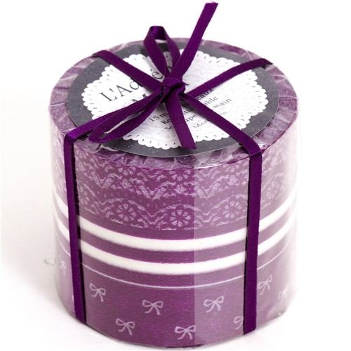 #Ensemble de 3 rubans adhésifs en Washi violets avec des fleurs, des rayures & des n?uds, importé du Japon