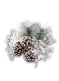 Accessoires "white snow", PVC/matière naturelle, sachet de 180 g. Contenu : brindilles, pommes de pin et baies scintillantes. flocage blanc